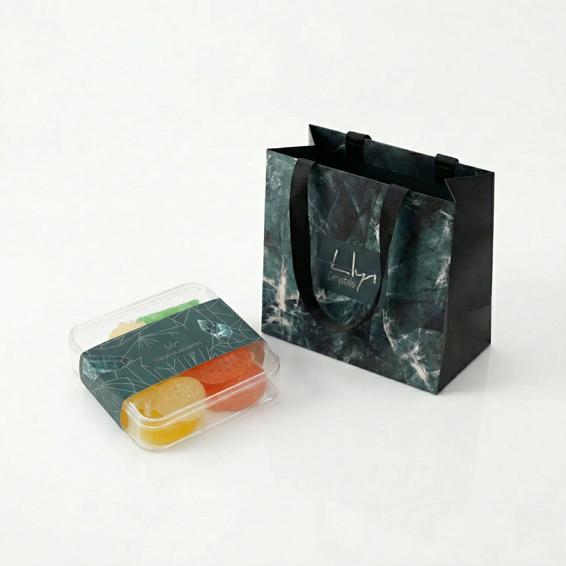 LLYN creates handcrafted crystal confections that are entirely edible and 100% vegan. Each crystal is poured, coloured, and cut by hand, resulting in a unique crunchy shell and a soft interior. Think of them as edible jewels rather than traditional candy.
